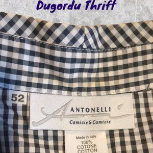 Woman's Size 52 Antonelli Camicie and Camicie Black and White Checked Button Up