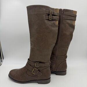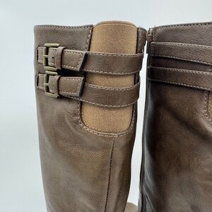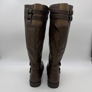 Woman's Size 9.5 Brown Knee High Boots - Western Side Zip - Hally Buckle JustFab