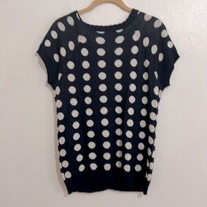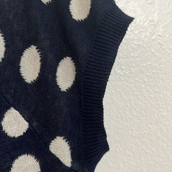 Woman’s Size L Navy Blue White Polka Dot Light Weight Button Up Sweater Vest