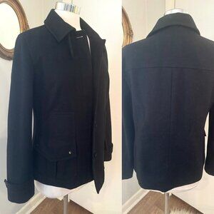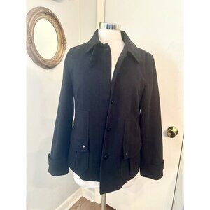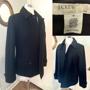 Woman’s Size M J. Crew Black Short Wool Blend Coat Jacket Pockets J Crew Preppy