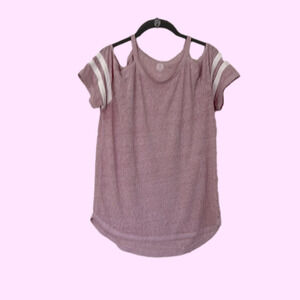 Woman’s Sporty White Stripes Pink Shirt NWOT Never Worn Size L Cut Out Straps