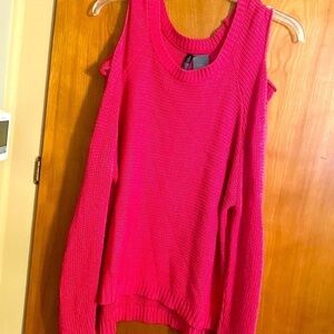 Bisou Bisou Woman’s Cold Shoulder Sweater w cut out sleeves as well 100 percent Acrylic