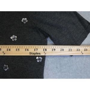 Add a touch of sparkle to your wardrobe with this Talbots short-sleeved top. The gray shirt is adorned with beautiful floral sequins that catch the eye. Made from a comfortable blend of rayon and cotton, the top has a classic crew neckline and fitted sleeves for a timeless look. The knit fabric is soft and durable, ensuring this shirt will become a staple in your wardrobe for years. With a size medium and a regular fit, this T-shirt is perfect for any casual occasion. Express your feminine side with this basic yet stylish shirt that features a floral theme.