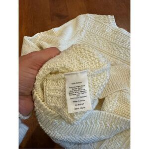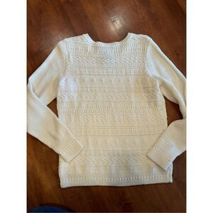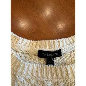 Woman’s Talbots 100% cotton sweater. Gently worn like new condition. The armpit to armpit measurement is 17 1/2 inches. Size large. From the shoulder to the bottom of the sweater is 24 inches. No rips or stains. Smoke-free and clean home