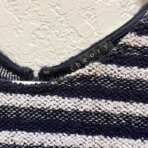 Theory Sheath Dress Black Striped Short Sleeve with V Neck