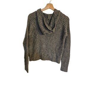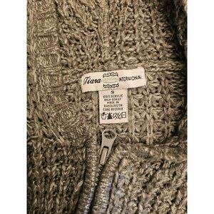 Womans Tiara International Knit Jacket hooded Size Small Gray chunky