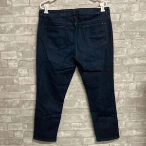 Feels like cotton spandex - slightly distressed stretch 5 pocket one button front zipper closure slim crop denim jeans. . Measurements Laying flat: waist 18” - rise 11” - inseam 26” - leg opening 7”. Preowned condition please check all pictures for details.
