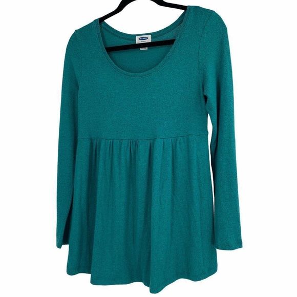 Womans Top Maternity 9563 Small Old Navy Cozy Fleece Peasant Tunic Green Scoop Long Sleeve