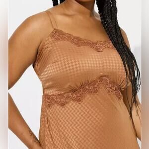 Woman’s Torrid Tea Length Woven Jacquard Lace Trim Cami Dress Size 2