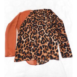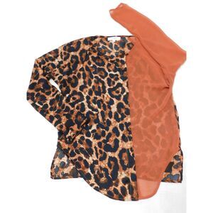 Woman's Umgee Animal Print Top Sz. S Leopard Rust Sheer Hi Lo