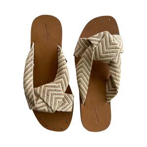 Woman’s Universal Thread Louise Chevron Print Knotted Slide Sandal Tan Size 8.5
