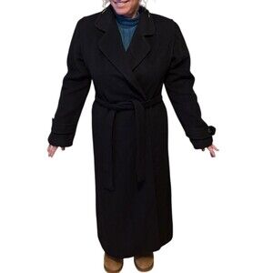 Womans Vintage Ed Mitchell of Westport CT 100% Black Cashmere USA Made Belted Coat Designed & tailored by Merin exclusively for Ed Mitchell of Westport CT