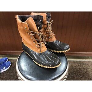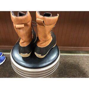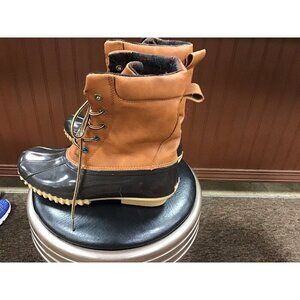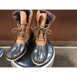 These classic boots are a perfect addition to any wardrobe. They feature a mid-calf shaft style, round toe, and lace-up closure for a secure and comfortable fit. The flat heel style adds to their versatility, making them suitable for any occasion, from casual to formal. The boots come in a beautiful brown color and are made of high-quality leather, ensuring durability and long-lasting wear. These vintage Sporto duck boots are not only stylish but also practical, making them ideal for outdoor activities in any season. They are available in size 8 and are suitable for women of all ages. With their unique themes and styles, they are perfect for those looking to add a touch of retro, preppy, or hipster to their outfit. Get yours today and step out in style! Gently loved lots of life left.