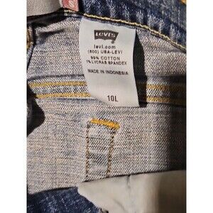 This is a vintage Levi's 505 acid wash denim jeans from the 1990s in a size 10 with a regular fit. The jeans have a straight leg style with a 32-inch inseam and a 32-inch waist. They feature the classic 5 pocket design and have a grunge look. The jeans were manufactured in Mexico and are made of denim material.