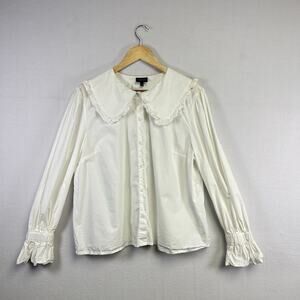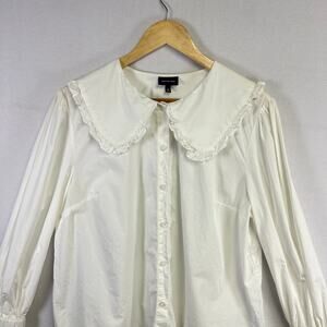 Woman's White Peter Pan Collar Botton Up Blouse - Size XL Vintage Classic