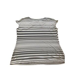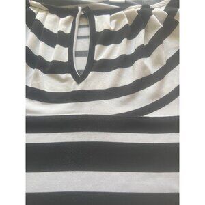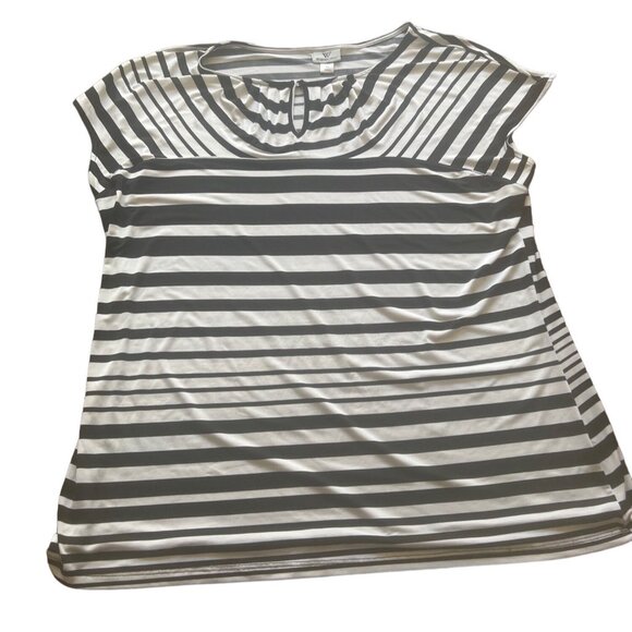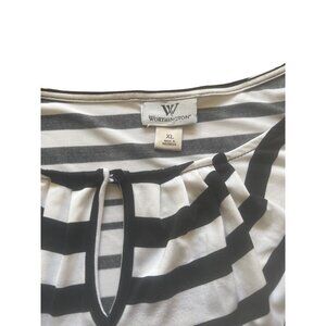 This women's Worthington stretch spandex blouse top in size XL is a stylish choice for any occasion. With its black and white stripe pattern, it combines comfort with fashion.