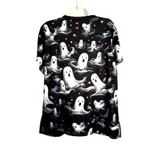 Woman's XXL Nurse Scrub Cute Ghostly Print V-Neck Front Pockets Scrub Top #B