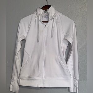 Two small stains. Zoomed in to show in picture. Thick material. Good condition