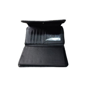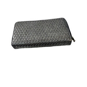Dark gray weaved design womans billfold with room for check book, change, credit cards and bills, like new never been used but no tags.