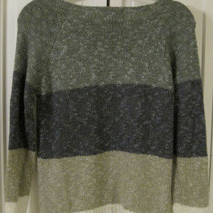 Very soft and comfy.Mar-led wool look. New never worn. Size says says extra small but this is not true to size, this is closer to a size 10 fitted. Colors are beautiful, slate , midnight blue, grey and white trim with white trim sleeves. Light fabric but warm! Can be casual or dress up with white slacks or jeans.