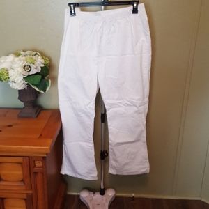 Never worn. Full elastic waist, no pockets. Great for casual wear or even scrubs. Slight bootleg