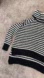 Cozy turtleneck sweater with black and white stripes. Perfect for chilly days.