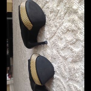 Black peep toe heels with gold platform. Never worn woman's size 6.