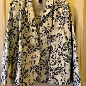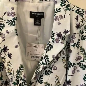 Liz Claiborne blazer size 2X, white floral one button front closure, long sleeves two pockets. New Comes with original tag.