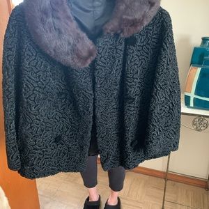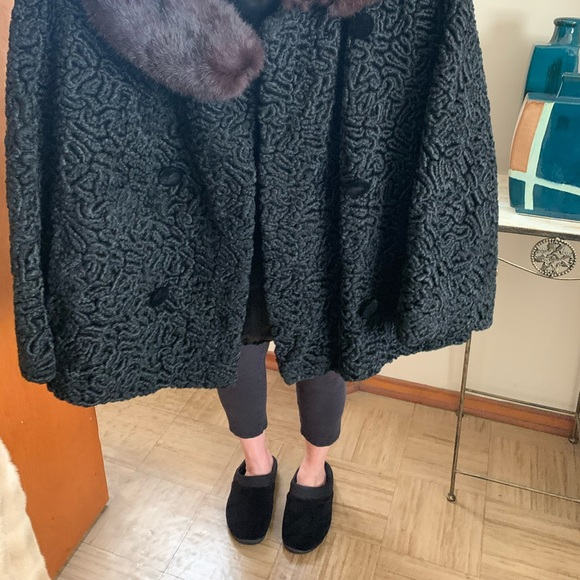 Black brocade jacket with brown mink fur collar