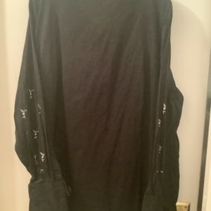 Woman’s long sleev plus size black blouse top shirt embellished with embroidery