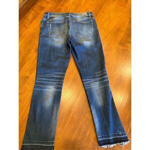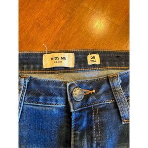 Woman’s miss me ankle crop jeans. They are a waist size 28. The distressed look is how they came. The inseam is 27. These are ideal if you’re on the shorter side or just prefer the ankle crop look. Smoke-free and clean. Gently worn.
