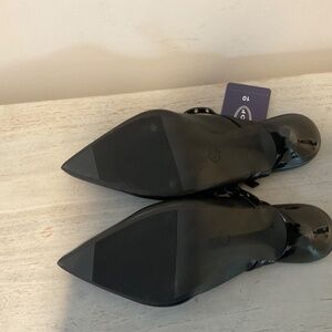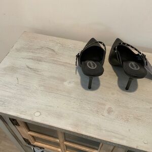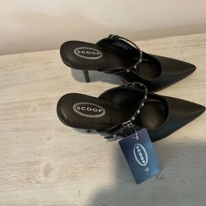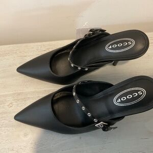 Designed by scoop NWT sleek black in color and a chic design. This shoe has a pointed toe and a high stiletto heel (approx 4") with a stylish strap.