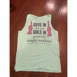 Woman’s simply southern guys in ties and girls in pearls tank top size medium. No holes rips or stains. Smoke free and clean home.