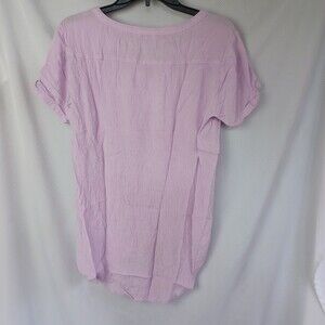 Woman's size Medium Purple Sonoma short sleeve tunic. 100% rayon make is cool and comfortable to wear. Cute breast pockets on each side. 3 open buttons in the front making it a kind of V-neck. The buttons are original and do not appear to be resewn. This would be cute paired with legging or jeggings. It could be worn with sneakers or cute strappy sandals. The lavender color make it perfect for spring and summer.