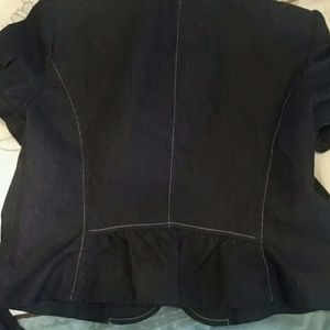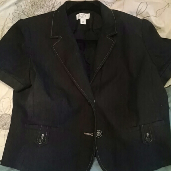 Ann Taylor Loft suit. Comes with adorable short sleeve jacket. One pair Marisa cut Capri pants. And one pair Ann cut full length pants. It's a dark blue grey color, jean like. Neither the pants nor the Capri have a liner.