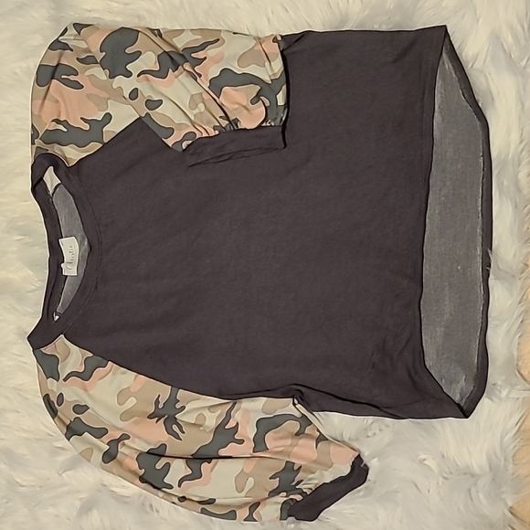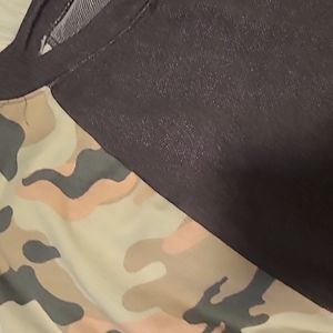 adorable super soft high low hem, raglan ballooned 3/4sleeve with pink, cream, gray and tan. the front and back are solid grat,size large