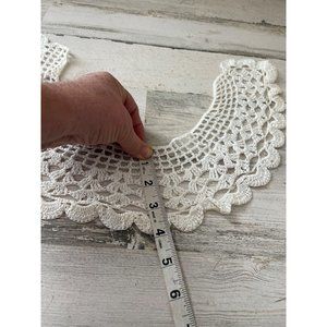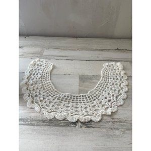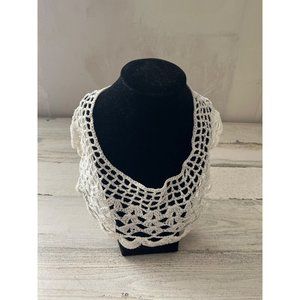 Woman’s white crocheted collar with no closure. Could add snaps or buttons to close. Measures approximately 24.5” across. Good pre-owned condition.