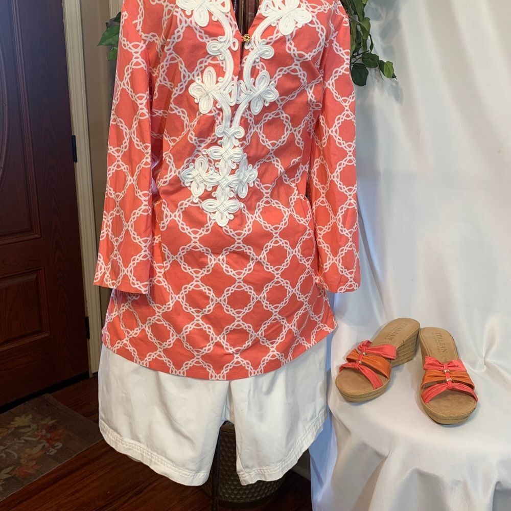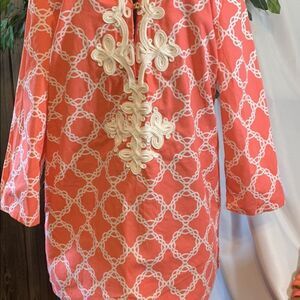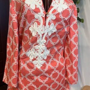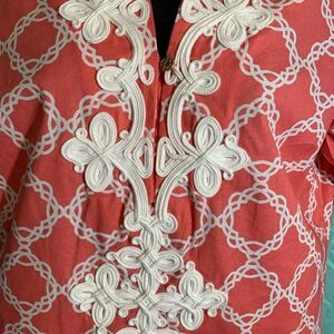 Ladies Pink/White with Embroidery down the front with a Gold button closure size S in great condition (Shirt for sale only)