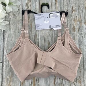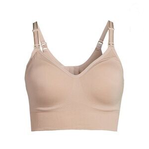 Just what the nursing mom needs for her new intimates’ wardrobe. Destination Maternity's nursing bra allows for easy accessibility and all-day comfort. With adjustable straps, 4-way stretch fabric and molded sewn-in cups that are leak-free, you can take care of your little one with confidence. No need for tugging or adjusting with the wire-free design and hook and eye closure.