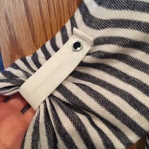 Women’s 3/4 sleeve striped blouse. Pleated hem goes well with leggings or jeans
