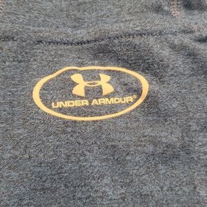Under Armour is written vertically on the shirt there is an Under Armour symbol on one sleeve