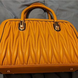 cute handbag/purse. no brand name. NWOT. can be used with or without shoulder strap. giant gem on top that opens and closes purse.