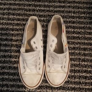 pre-owned still lots of life left size 7 please zoom in on all my photos for they are part of my description these are unb4 size 7 women's shoes outsold rubber uopera is canvas lining is canvas lots of signs of used