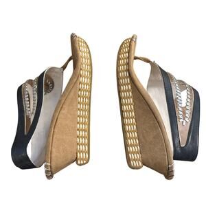 Tita is a mid-wedge, thong-style reversible sandal featuring a cutout pattern and whipstitch trim. Design your own look by wearing it on either side to complement any color, fabric, or design of your outfit. Mix and match, or mix and mismatch—the possibilities are endless, giving you the ultimate shoe experience.