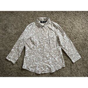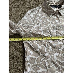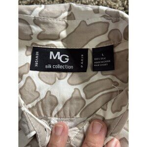 Women 100% Silk Button Shirt Tunic Animal Print Office Casual Quiet Lux LARGE