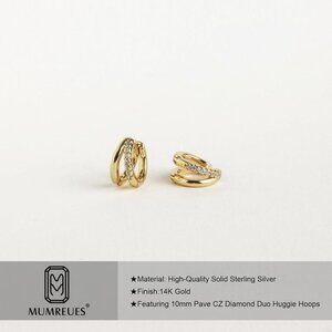 Hoop Earrings:Featuring 12mm Pave CZ Diamond Duo Huggie Hoops Earrings for Women.