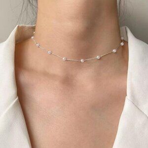 Size: The length of the dainty silver pearl necklace is 14 "+2 ". Pearl size: 5 mm/0.20 ". The lobster clasp design is very convenient to wear. This is the pearl necklace every women should have