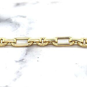 Women 14K Yellow Gold 8" Lobster Claw Hollow Oval Cable Link Elongated Necklace.