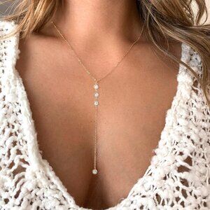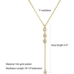 Length of the necklace: 16"+2"extension,Lariat drop:3.5".We have changed the carton packaging to the current plastic packaging box, which not only looks more refined but also more waterproof, it is the best box for daily jewelry storage.