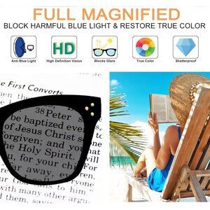 * FULL READER SUNGLASSES -Outdoor reader sunglasses for women 1.5 lenses are made of skin-friendly, light and thin materials. Multi-layer coating makes it strong, see things clearly without blurring and distorted. It can block high energy blue light. Relieving eye pressure & dispelling eye fatigue caused by using digital screen (Computer, phone, tablet, LED, etc.).